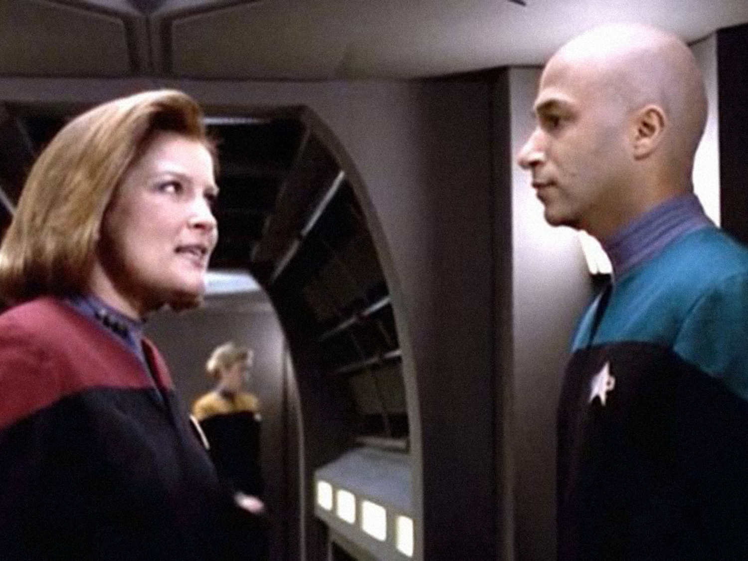 And Crewman Mitchell, appearing in the Voyager episode “Good Shepherd,” is unmistakably Rage Against the Machine and Audioslave guitar virtuoso Tom Morello.