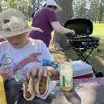 BBQ in Maisonneuve Park: Sadly only 5 of us turned up to enjoy the really nice weather. The park was lovely, even if lacking a pond, and the washrooms in the chalet were clean. Keith brought the new propane BBQ. It was fast and efficient.