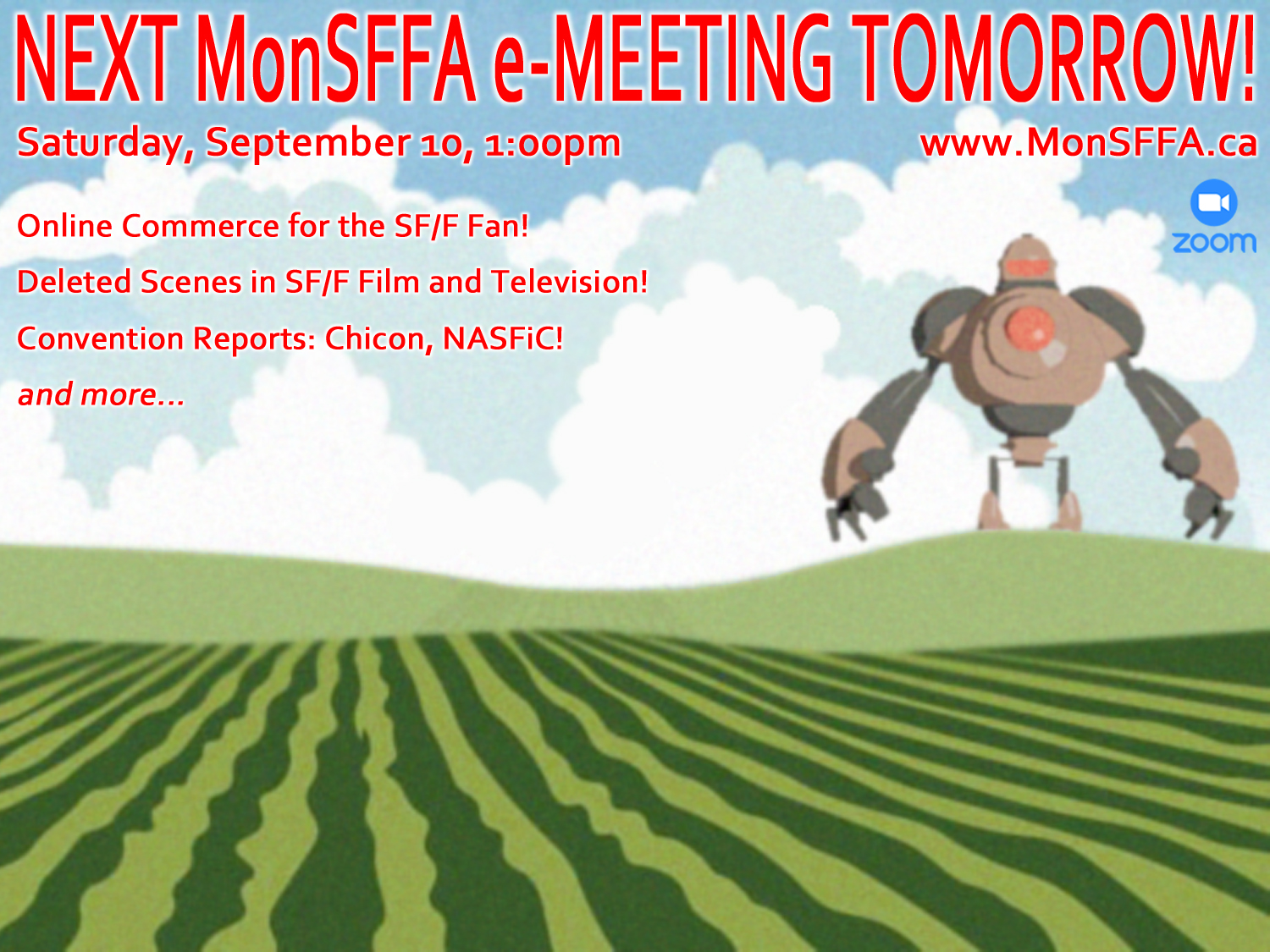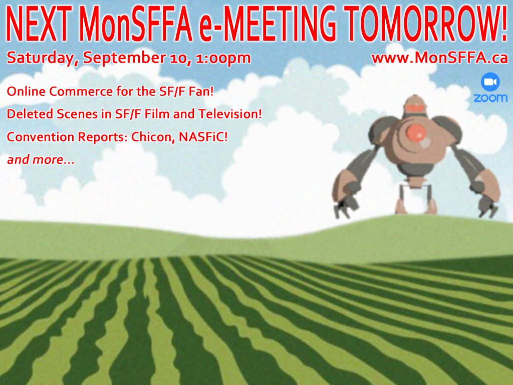 ZOOM with us for this month’s MonSFFA e-meeting, tomorrow, Saturday, September 10, beginning at 1:00PM!