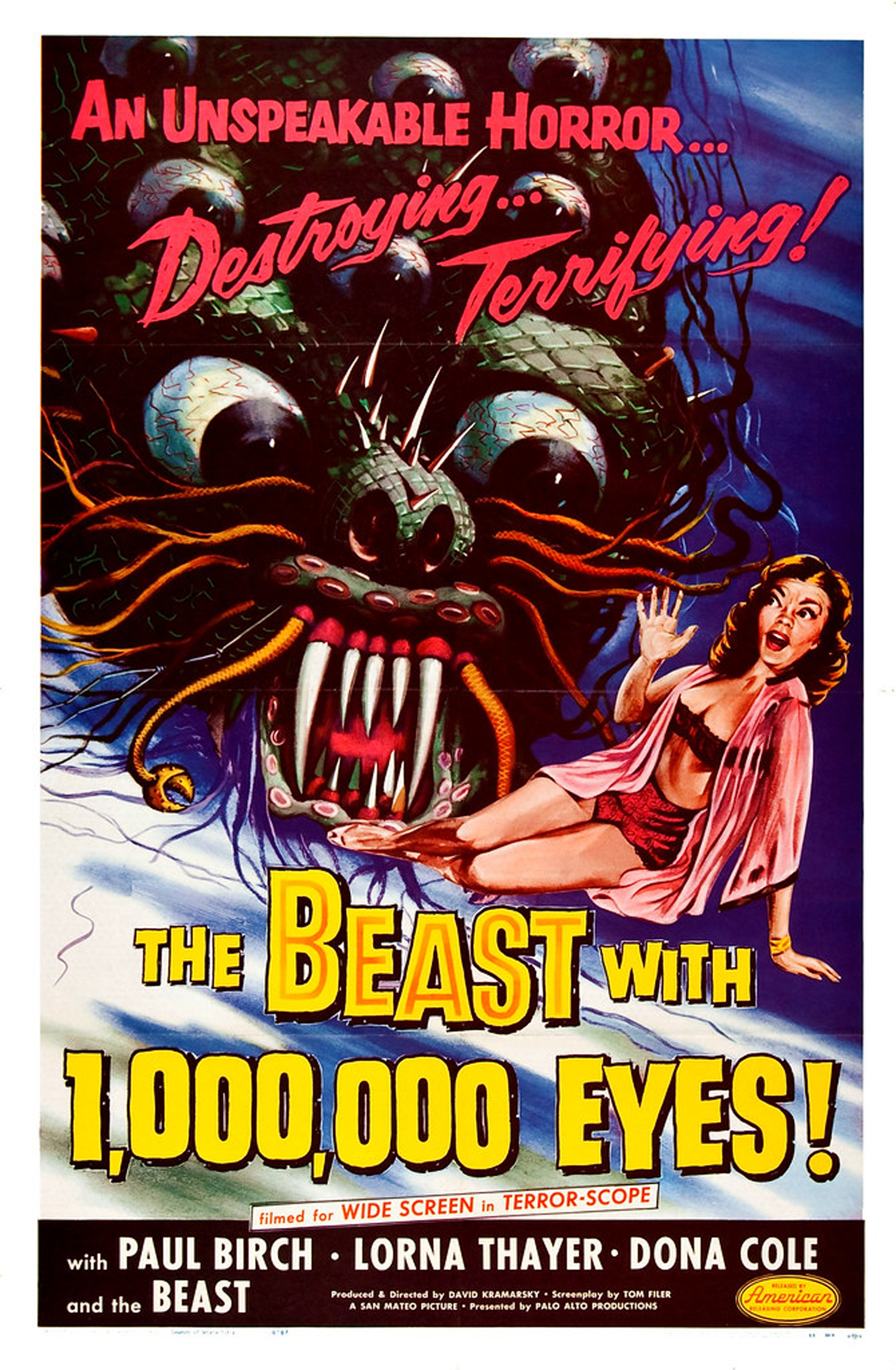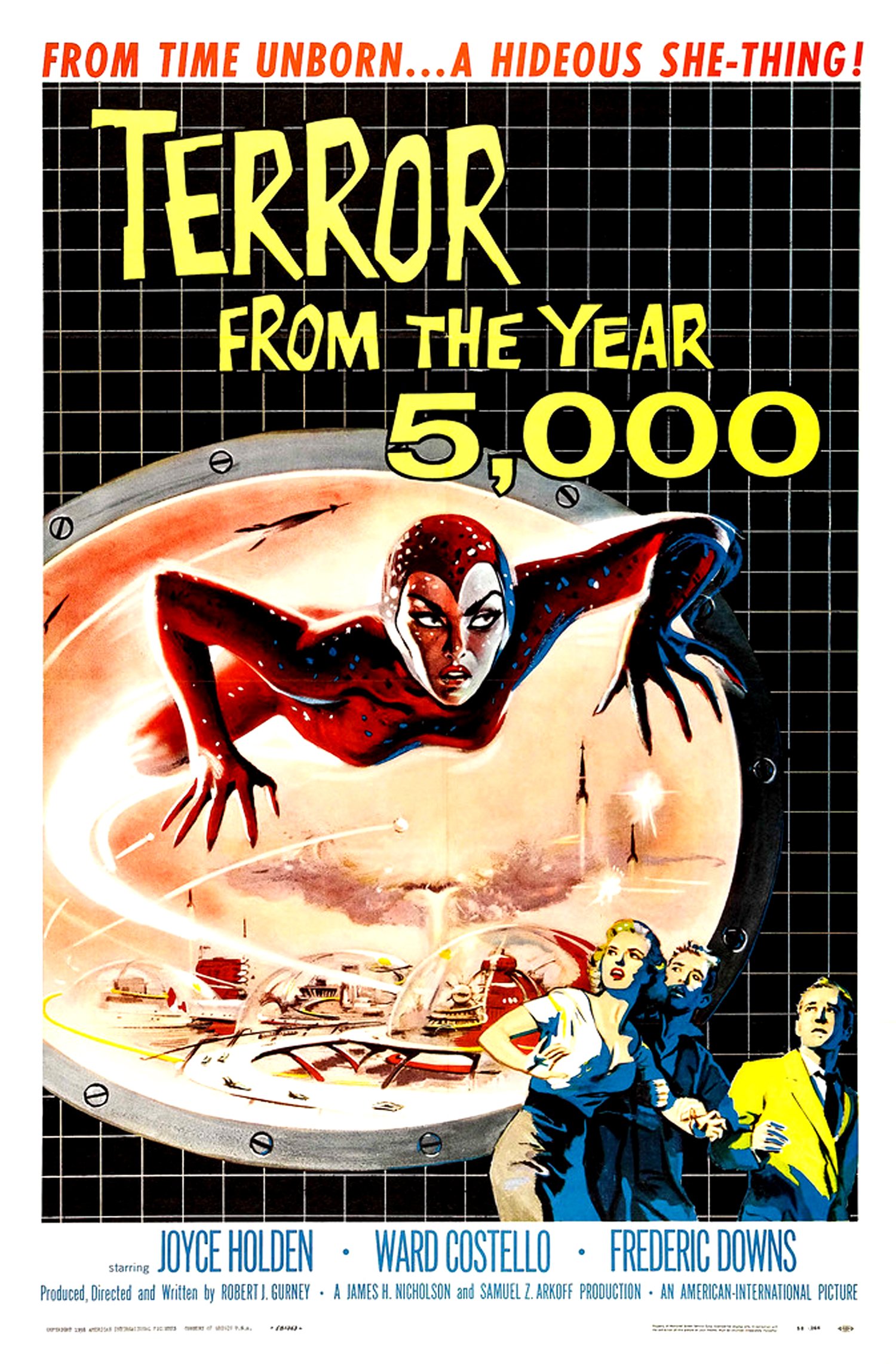 AIP’s approach was to pre-sell a film with a thrilling title and eye-catching poster, secure funding from exhibitors, and only then commission a script and shoot the movie, often in a matter of days or weeks! And an effective ad campaign was key to getting people into movie theatres and out to drive-ins for what were, after all, low-budget B-movies. A well-designed film poster promised excitement and thrills, and often, the sci-fi/horror monster featured looked better on the poster than in the film!