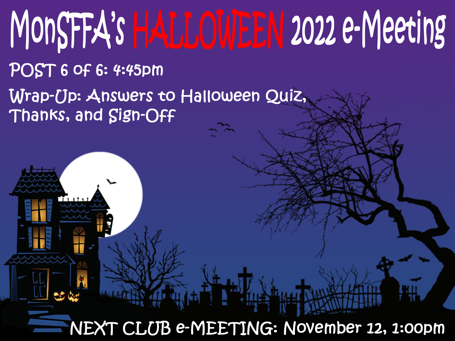 Before we wrap things up, here are the answers to the Halloween Quiz posted at the outset of this afternoon’s conclave: