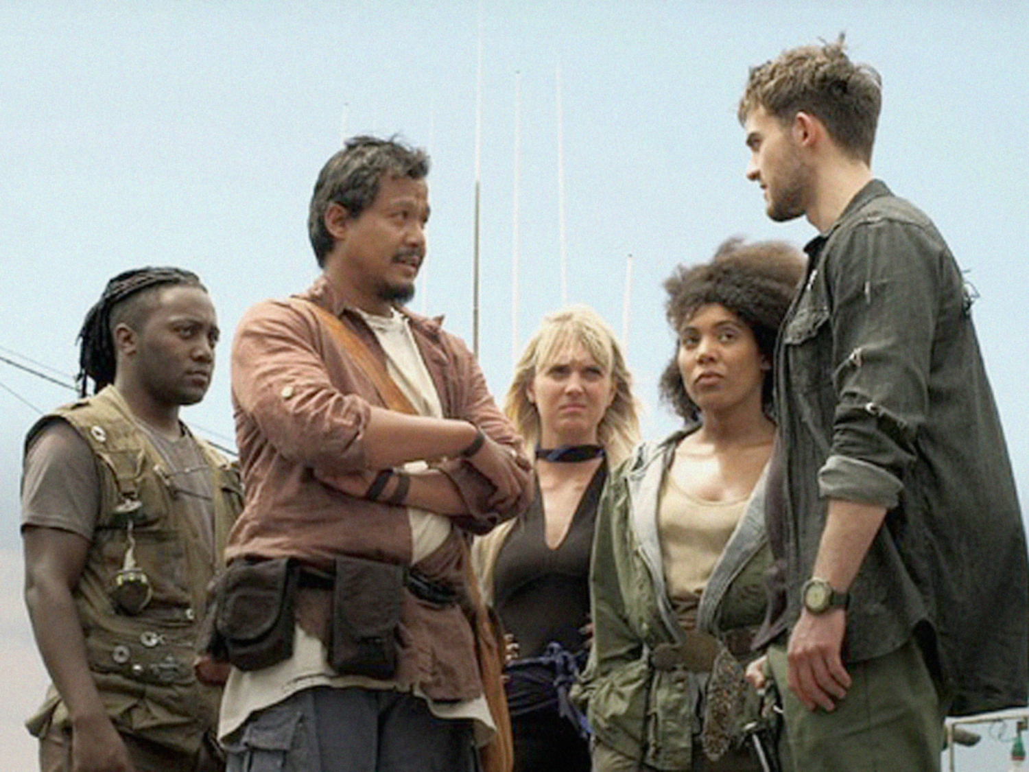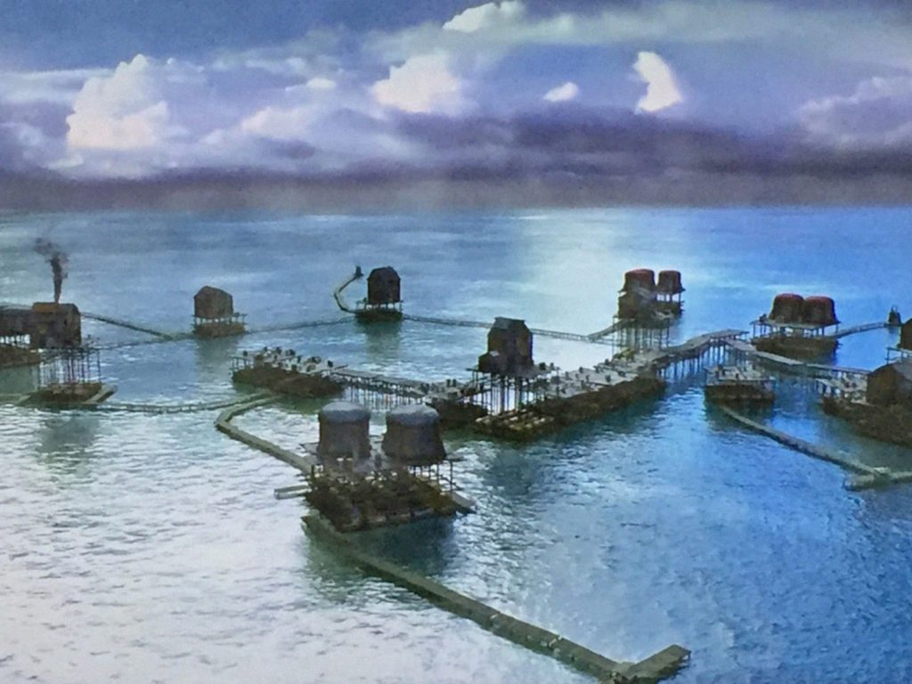 Set in a dystopian, Waterworld-like near-future in which global warming has caused the Earth’s glacial ice to melt, flooding the world, pockets of humanity survive on small floating islands of barges, wharves, and boats tethered together.