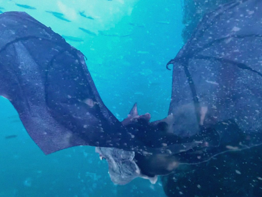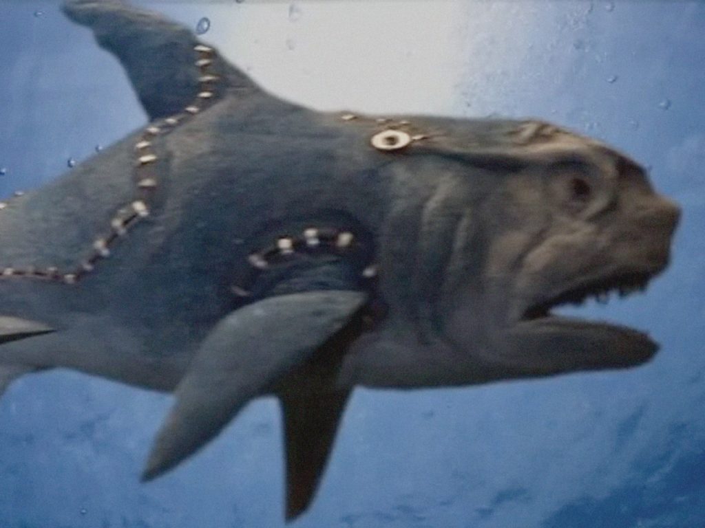 But first, an electronic gizmo must be dropped into a dormant undersea volcano in order to draw the threatening sharks to their doom when the team open fire with a laser, which will trigger an eruption. Or something.