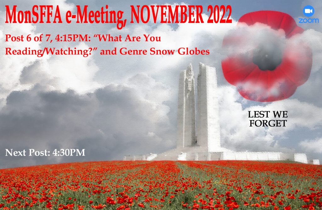 For those not participating in our ZOOM chat, today, you may still contribute by submitting your concise book reports or movie and television-series reviews via this post’s “Leave a Comment” option. We welcome your input.