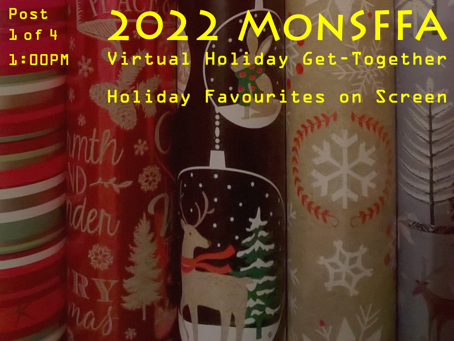 Note that we’ll be chatting on ZOOM for the next few hours and, with no formal programming scheduled, rerunning on this site a few of our best Holiday presentations, resurrected from MonSFFA’s very first online Christmas e-gathering of December 2020. Think of this as our take on the broadcasting of perennial Holiday specials, not on TV, but right here on the club’s Web site!