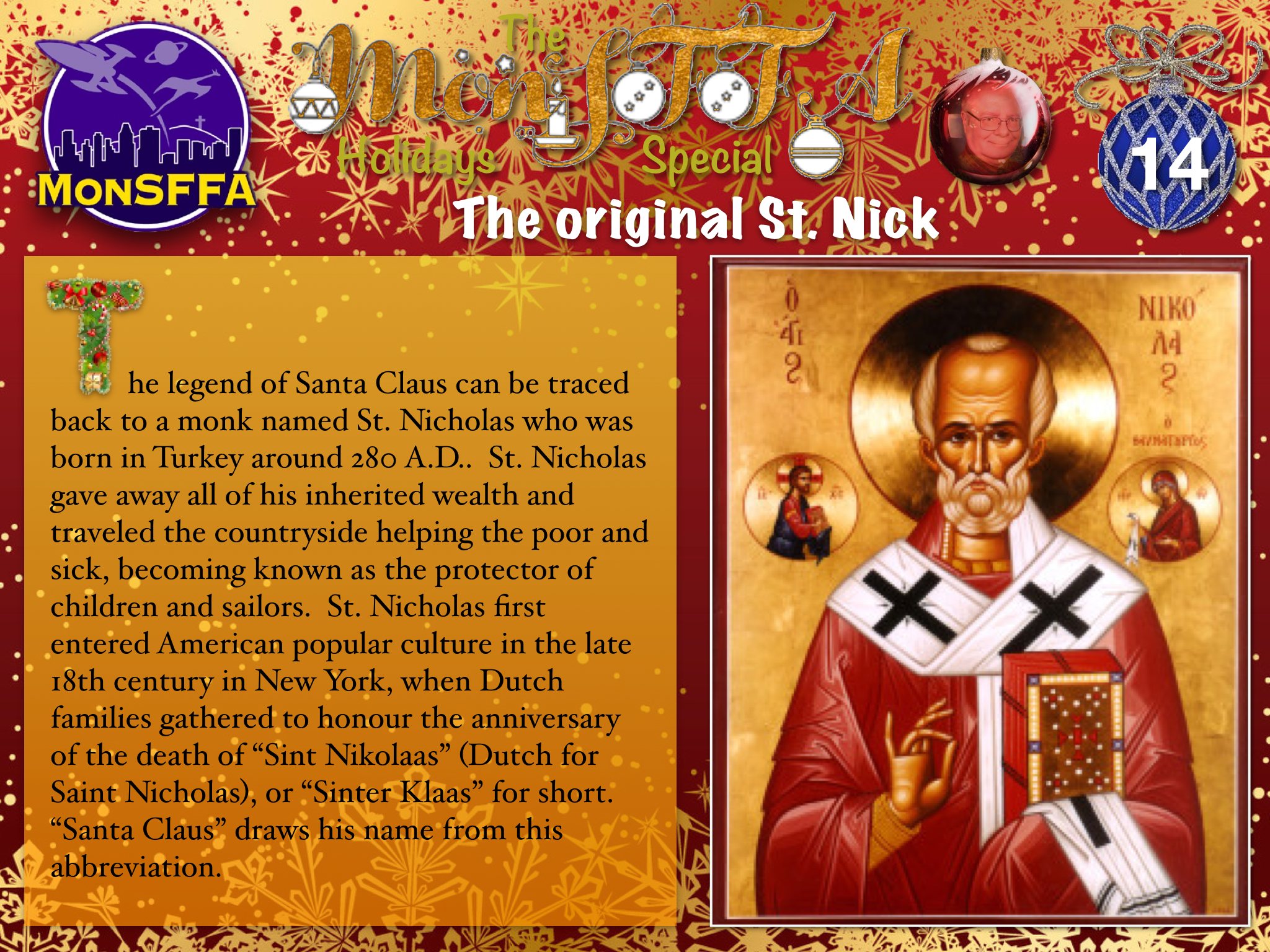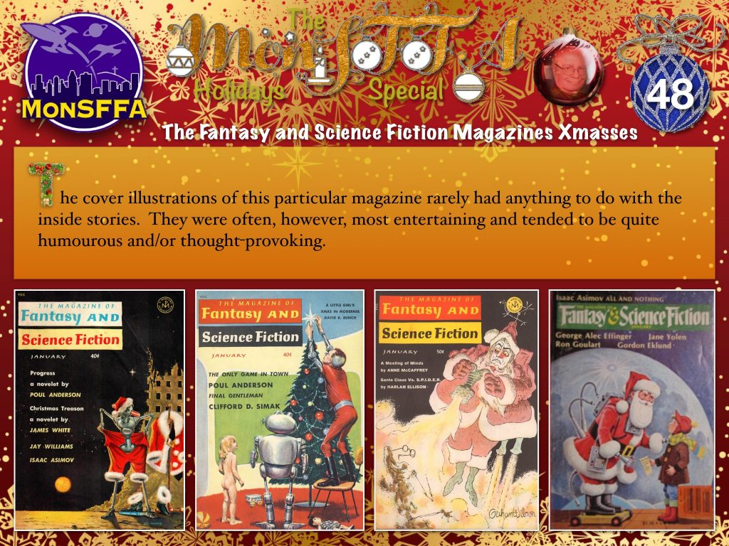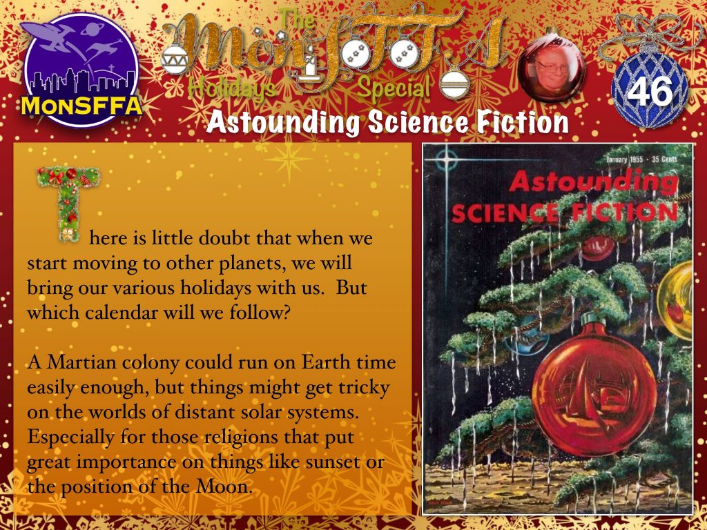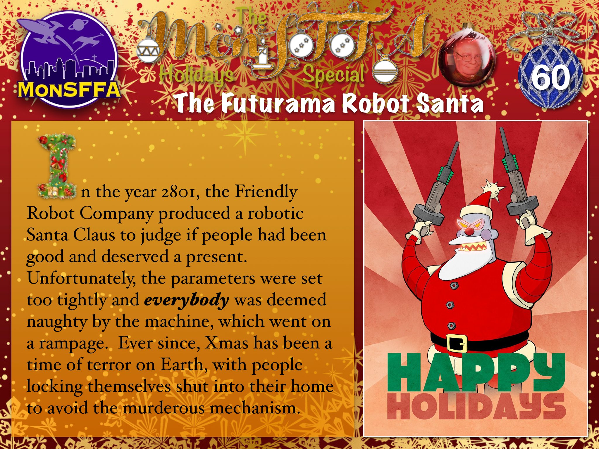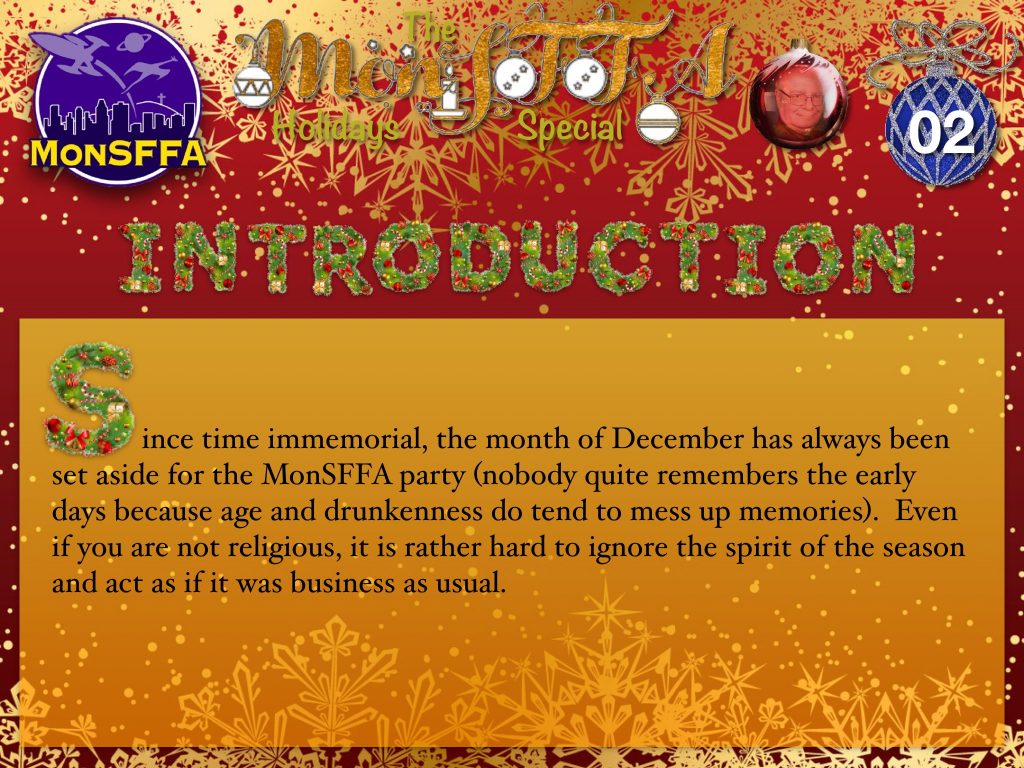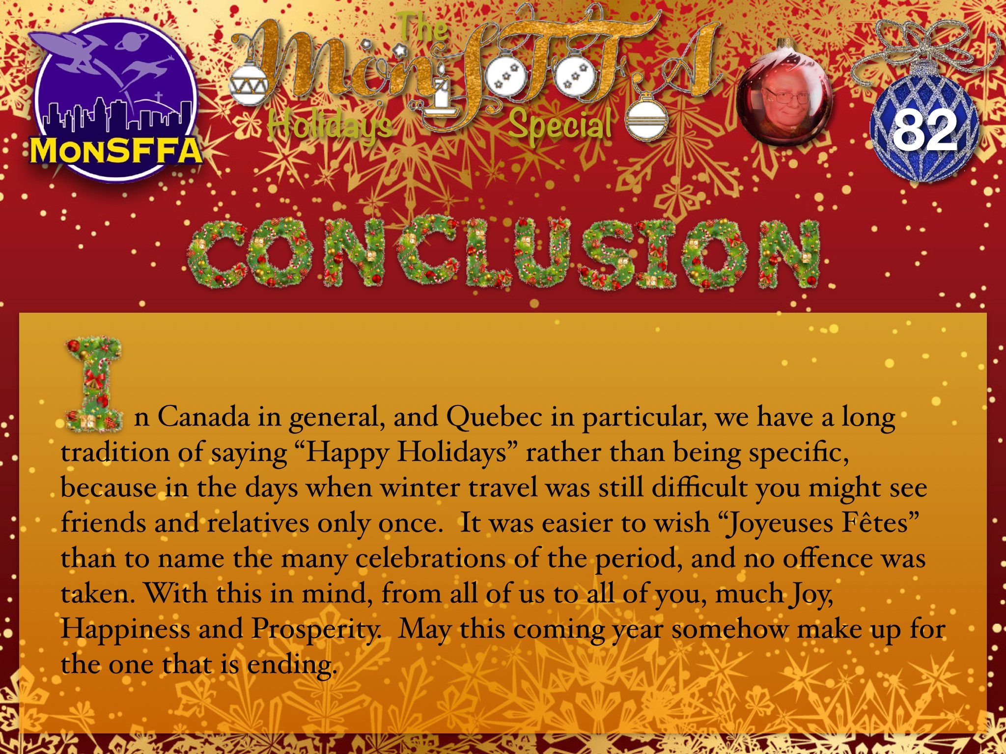 We rerun, here, the “MonSFFA Holidays Special,” a wonderful presentation put together in 2020 by our dear departed friend and club member Sylvain St-Pierre. Where appropriate, simply advance dates by two years.