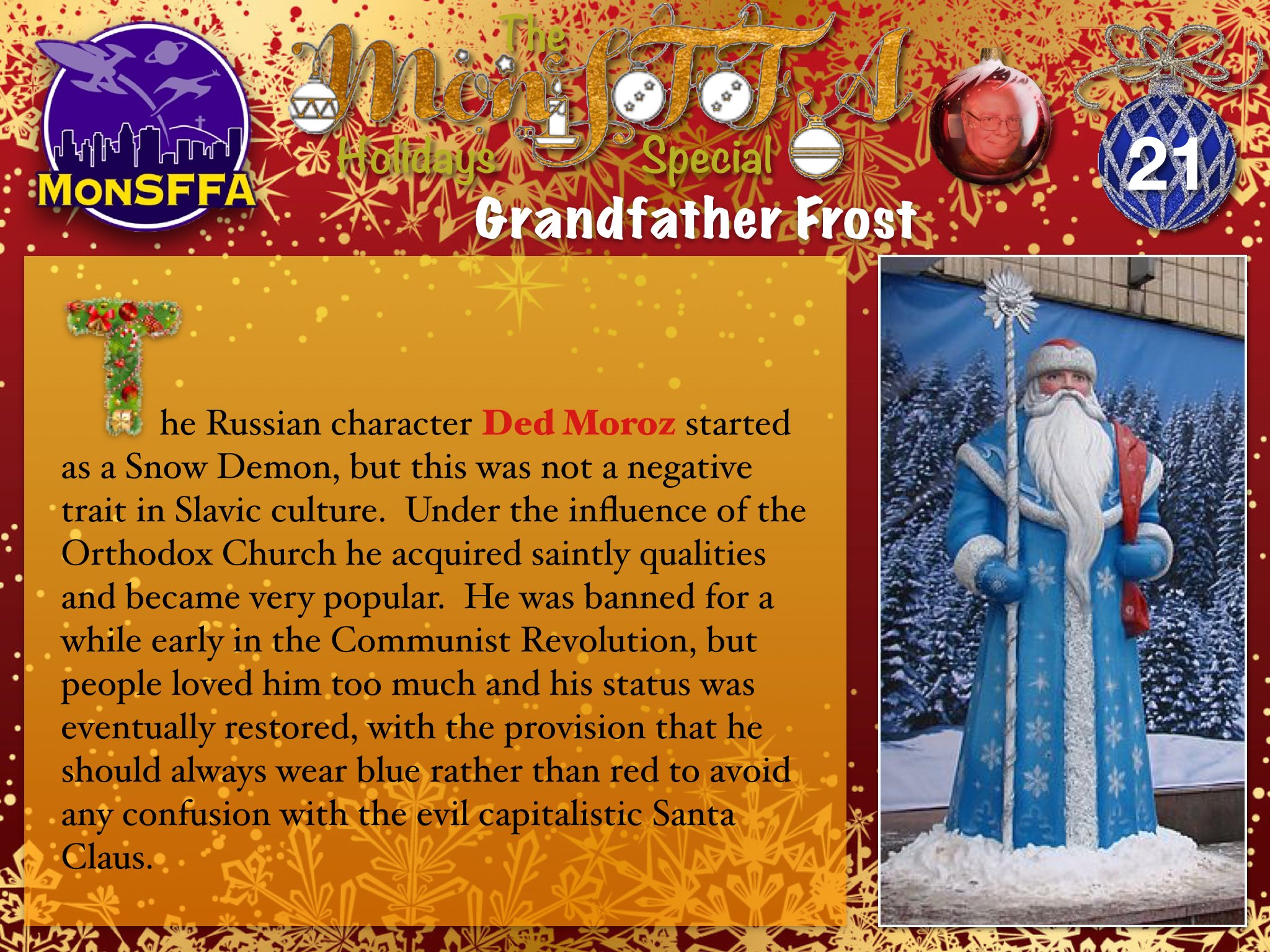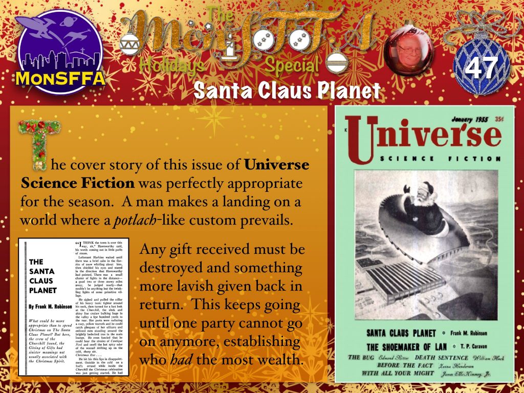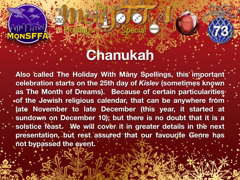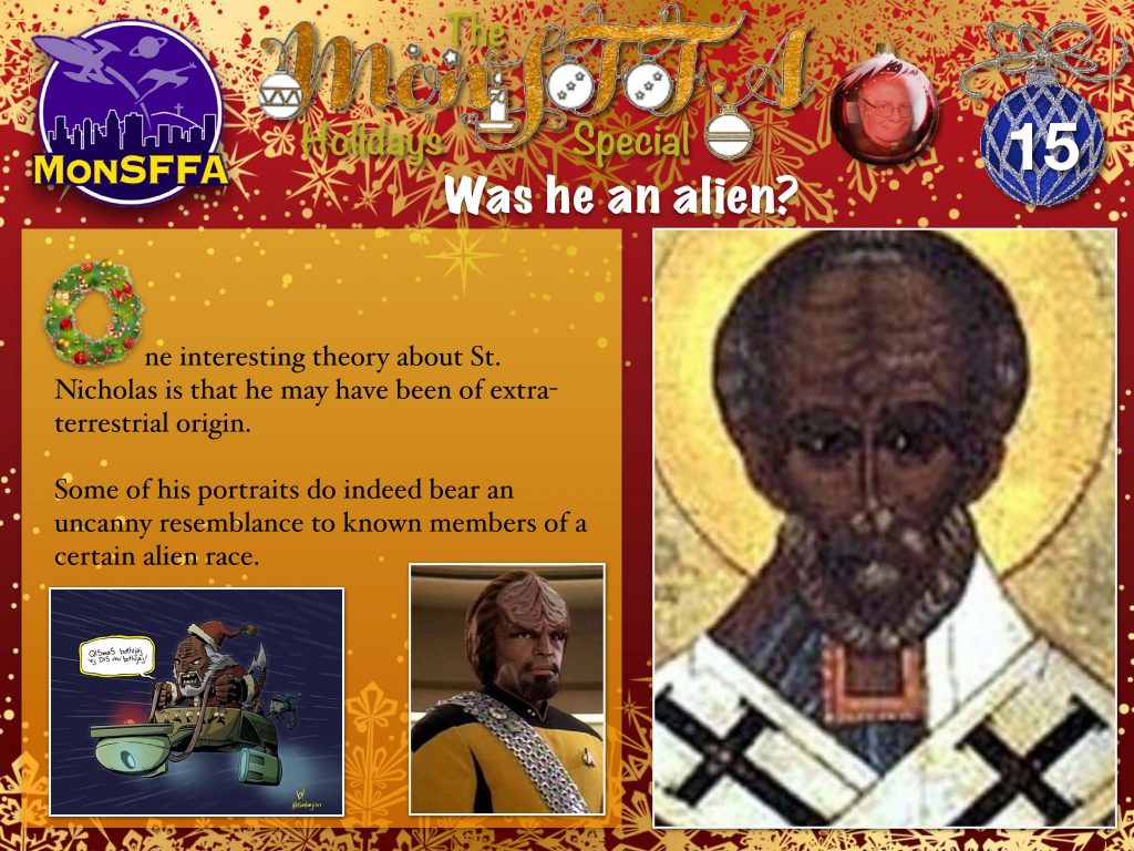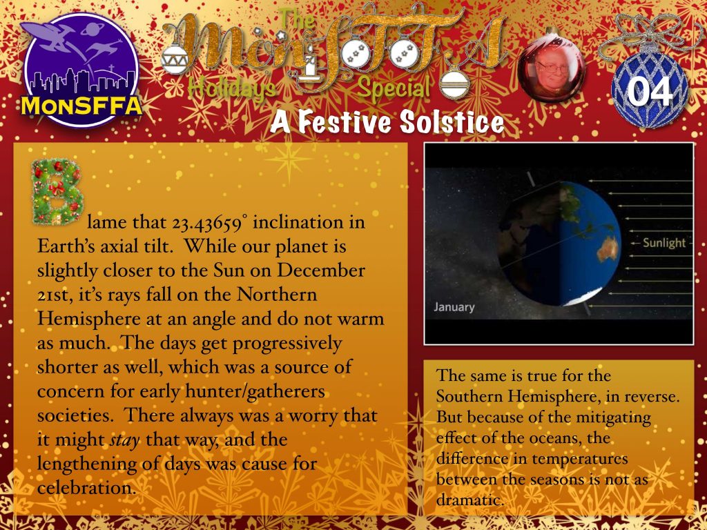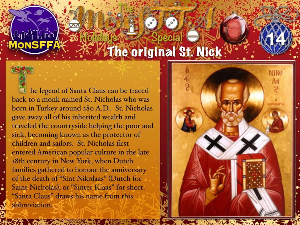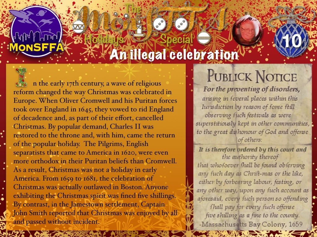We rerun, here, the “MonSFFA Holidays Special,” a wonderful presentation put together in 2020 by our dear departed friend and club member Sylvain St-Pierre. Where appropriate, simply advance dates by two years.