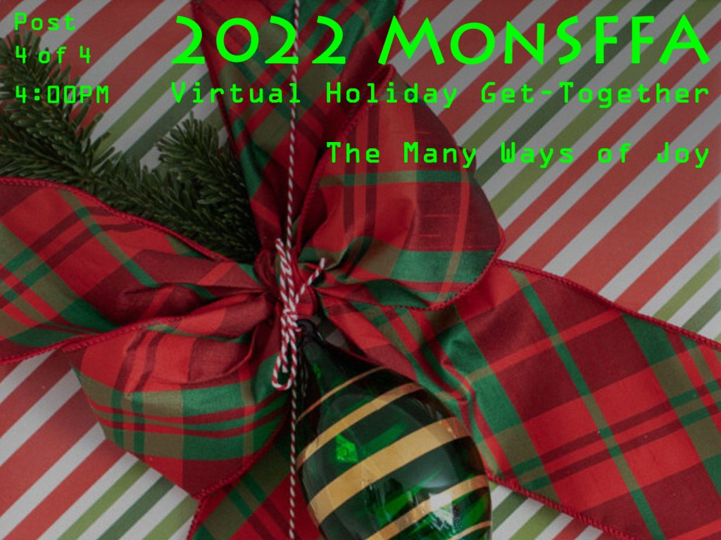 This is post 4 of 4, in which we bring to a close the principal content offered in this, our 2022 Virtual Holiday Get-Together. If you’re just now joining us, scroll back to today’s Post 1 of 4 to enjoy the posted content, start to finish.