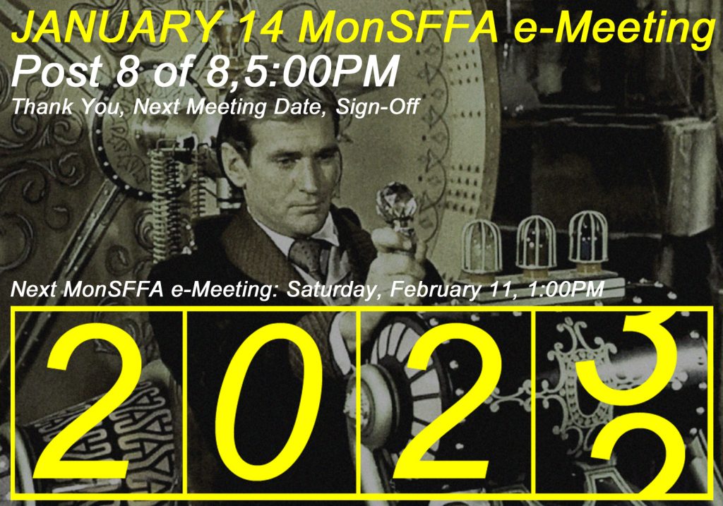 We invite you to join us again next month, right here at www.MonSFFA.ca, for another MonSFFA e-Meeting, scheduled for Saturday, February 11, beginning at 1:00PM.