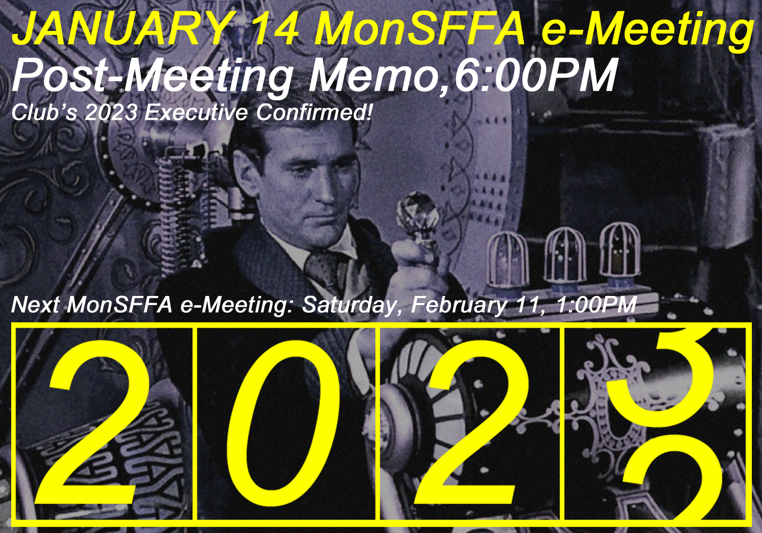 During the club’s January 14 e-Meeting earlier today, MonSFFA’s sitting Executive ran unopposed for another term in office, and have thus been acclaimed as the association’s 2023 Executive Committee. The recording of votes was, therefore, unnecessary.