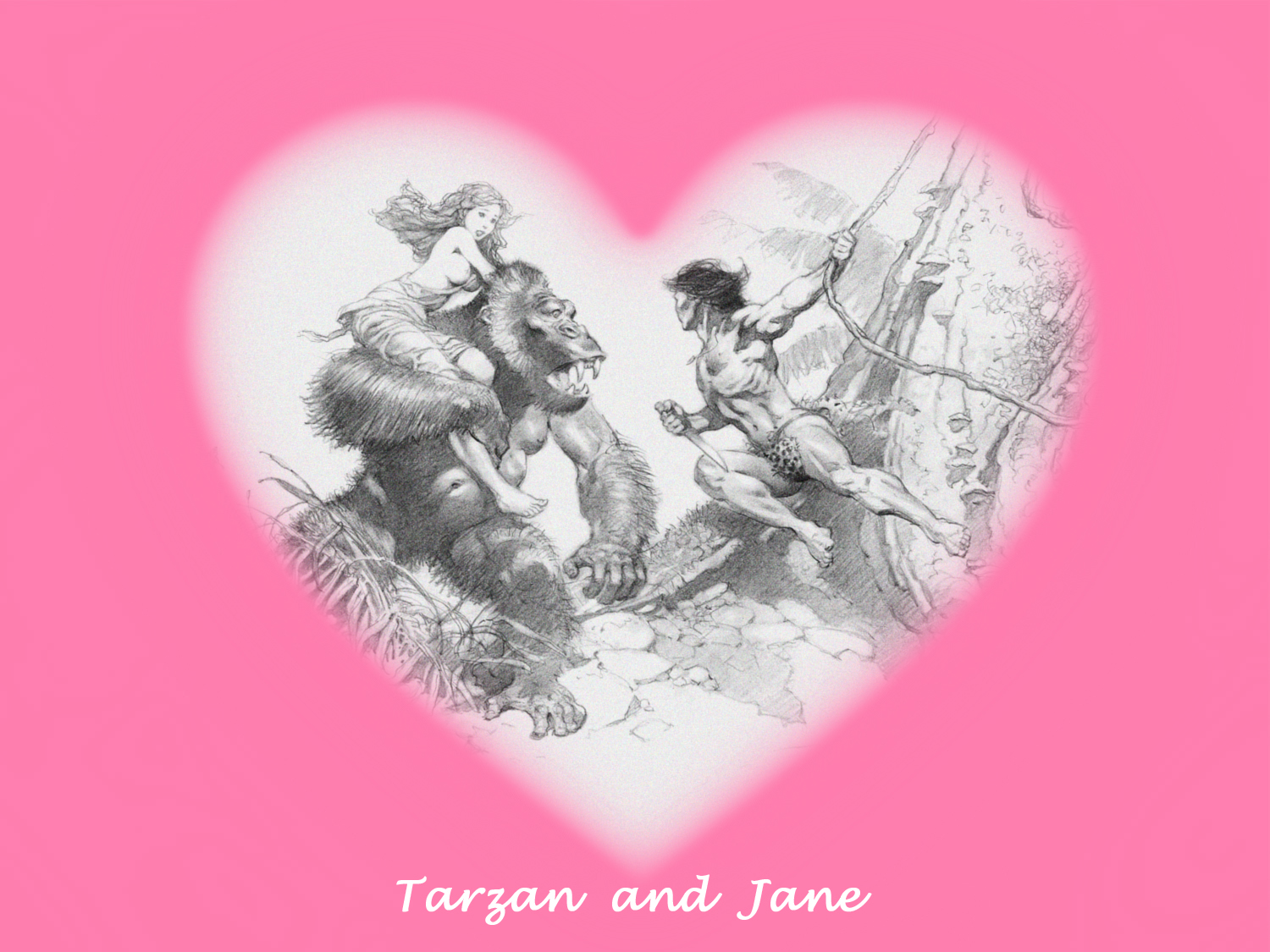 Tarzan and Jane, who might be described as a pair of swingers, are sci-fi/fantasy/adventure writer Edgar Rice Burroughs’ best-known characters. Since the couple’s debut in 1912, their story has been adapted countless times for radio, film, television, the stage, and in comics (pictured, as drawn by Frank Frazetta). Tarzan of the Apes was originally serialized in pulp magazine The All-Story (later, Argosy), and published as a book in 1914, the first of some two dozen Tarzan novels and collected works of short fiction comprising a series that ran until the mid-1960s.