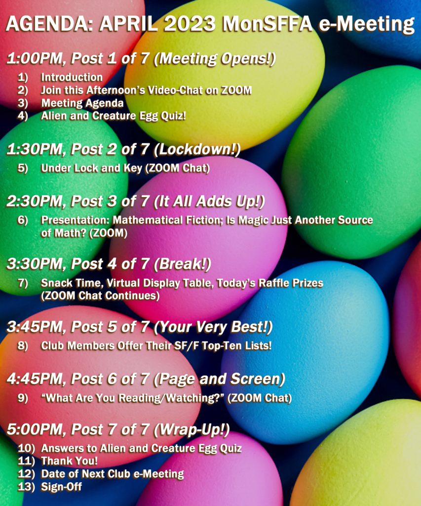 Welcome, one and all, to MonSFFA’s April 2023 e-Meeting!