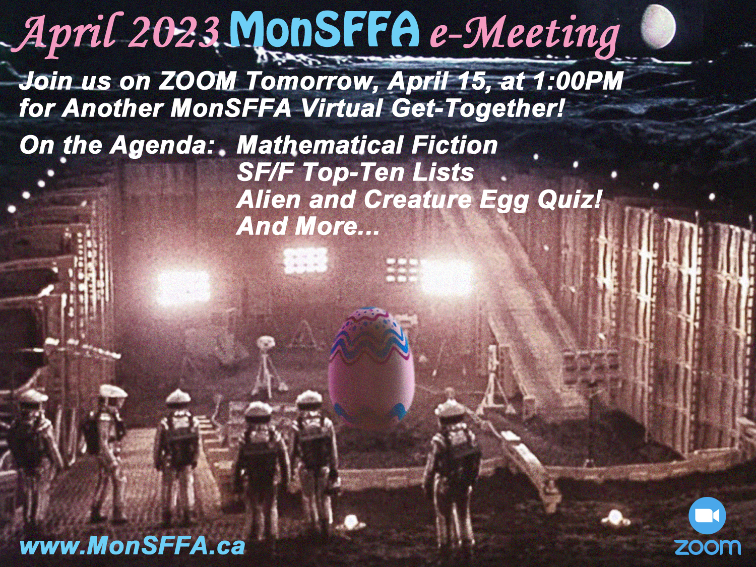 MonSFFA Website CLUB’S APRIL E-MEETING IS TOMORROW AT 1:00PM! 2023-04-14 Keith Braithwaite Sci-Fi and Fantasy Fun, Online, With Friends… See You Tomorrow Afternoon! Share this: Share on Facebook (Opens in new window) Facebook