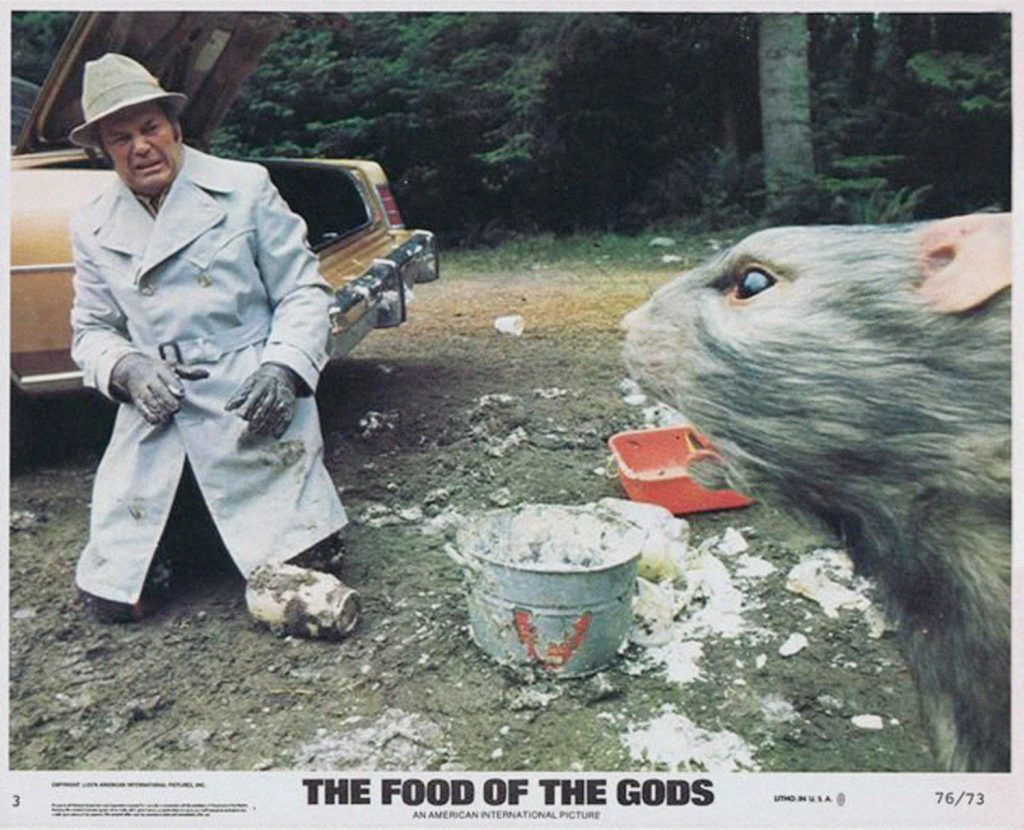 A group of friends travel to a remote island in British Columbia on a hunting trip, where they encounter oversized wasps and rats made gigantic after having ingested a strange, porridge-like liquid—the Food of the Gods—bubbling up through the soil on a nearby farm.