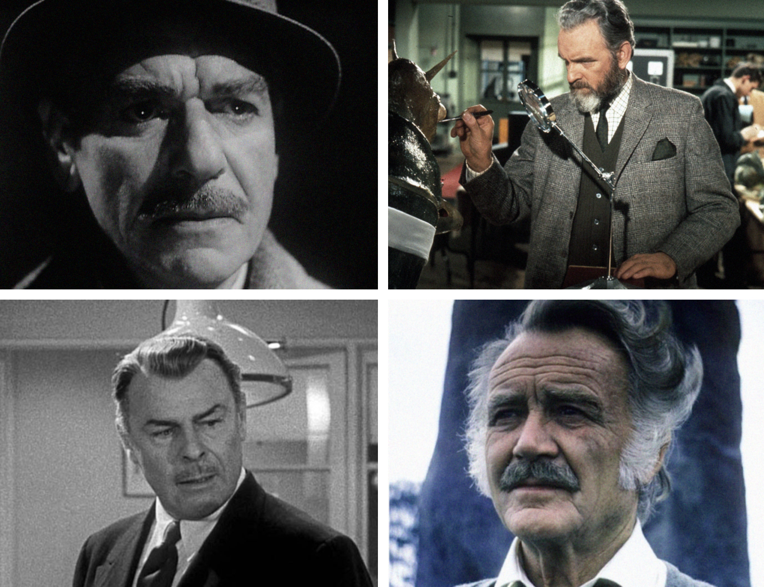 Quatermass was the main protagonist in the influential BBC science fiction television serials created by Nigel Kneale, and subsequently adapted as a trio of movies by Hammer Film Productions. Morell and Keir both played the role in Quatermass and the Pit, Morell on television (1958-1959), Keir in the Hammer film version (1967). Donlevy played the scientist-hero in Hammer’s The Quatermass Xperiment (1955) and Quatermass II (1957). And Mills played the character, now retired, in Quatermass (1979), a four-part ITV television series recut later that same year by Euston Films for theatrical release as The Quatermass Conclusion.