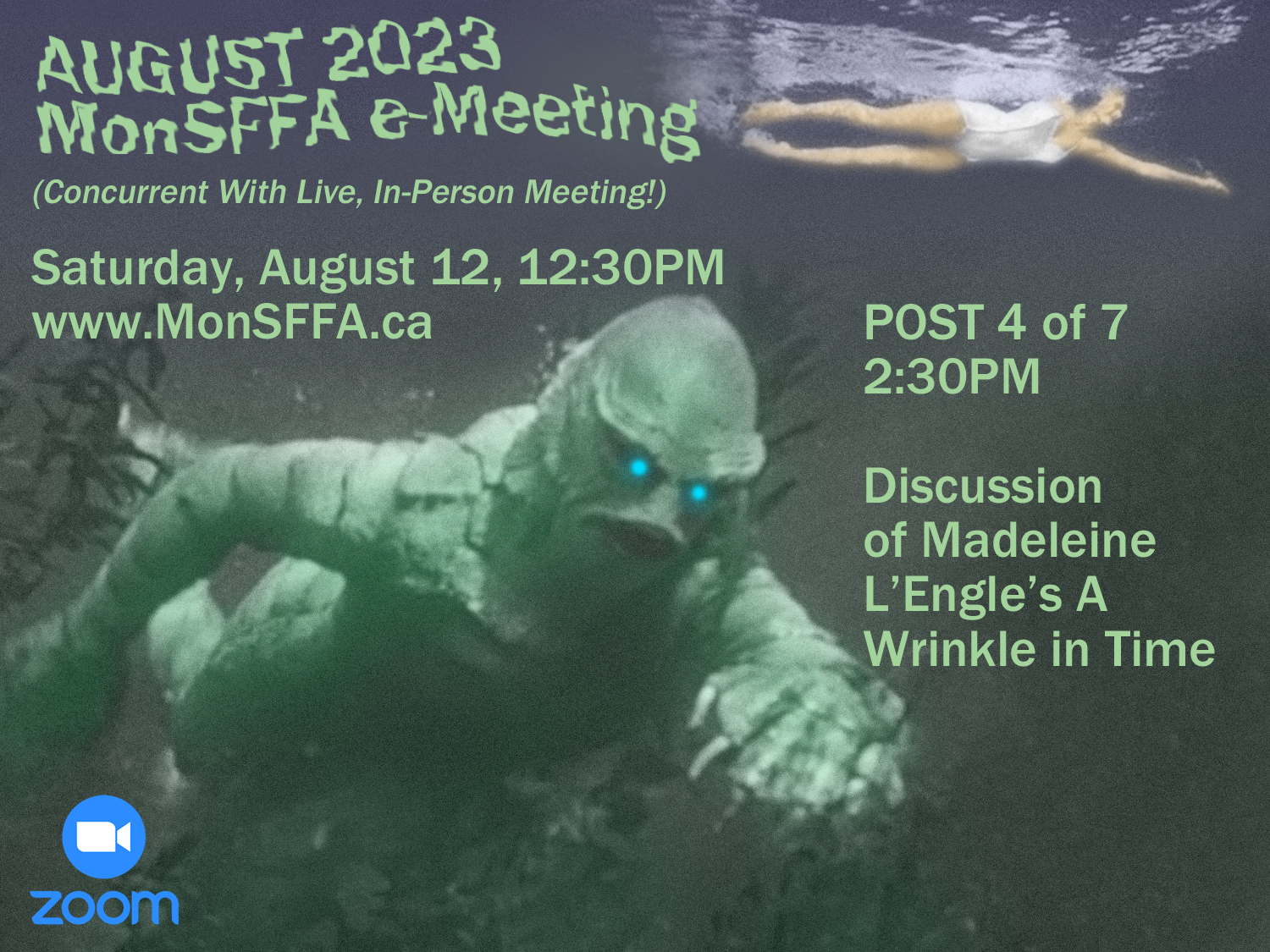 This afternoon’s e-meeting is something of an experiment. If the technology is performing properly and all has gone well, you are viewing a live-stream of MonSFFA’s first actual, physical, in-person meeting in over three years, now underway. Follow along, and participate, by way of our ZOOM-chat.