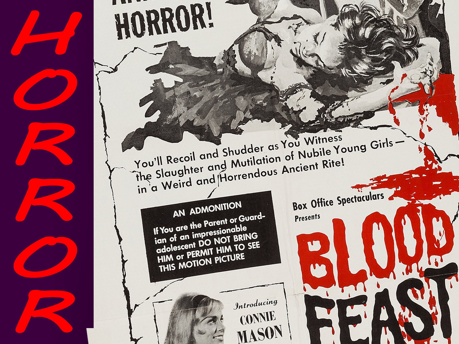 Although there are notable exceptions, Splatter films—more recently termed “Torture Porn” or “Gorno”—like Herschell Gordon Lewis’ seminal Blood Feast (1963), as well as his subsequent Two Thousand Maniacs! (1964) and Color Me Blood Red (1965), traffic in revulsion, frequently tinged with sex.