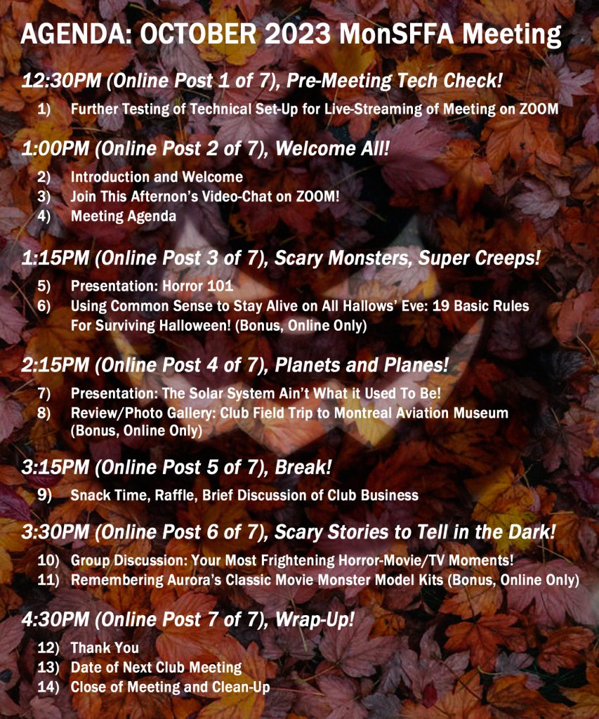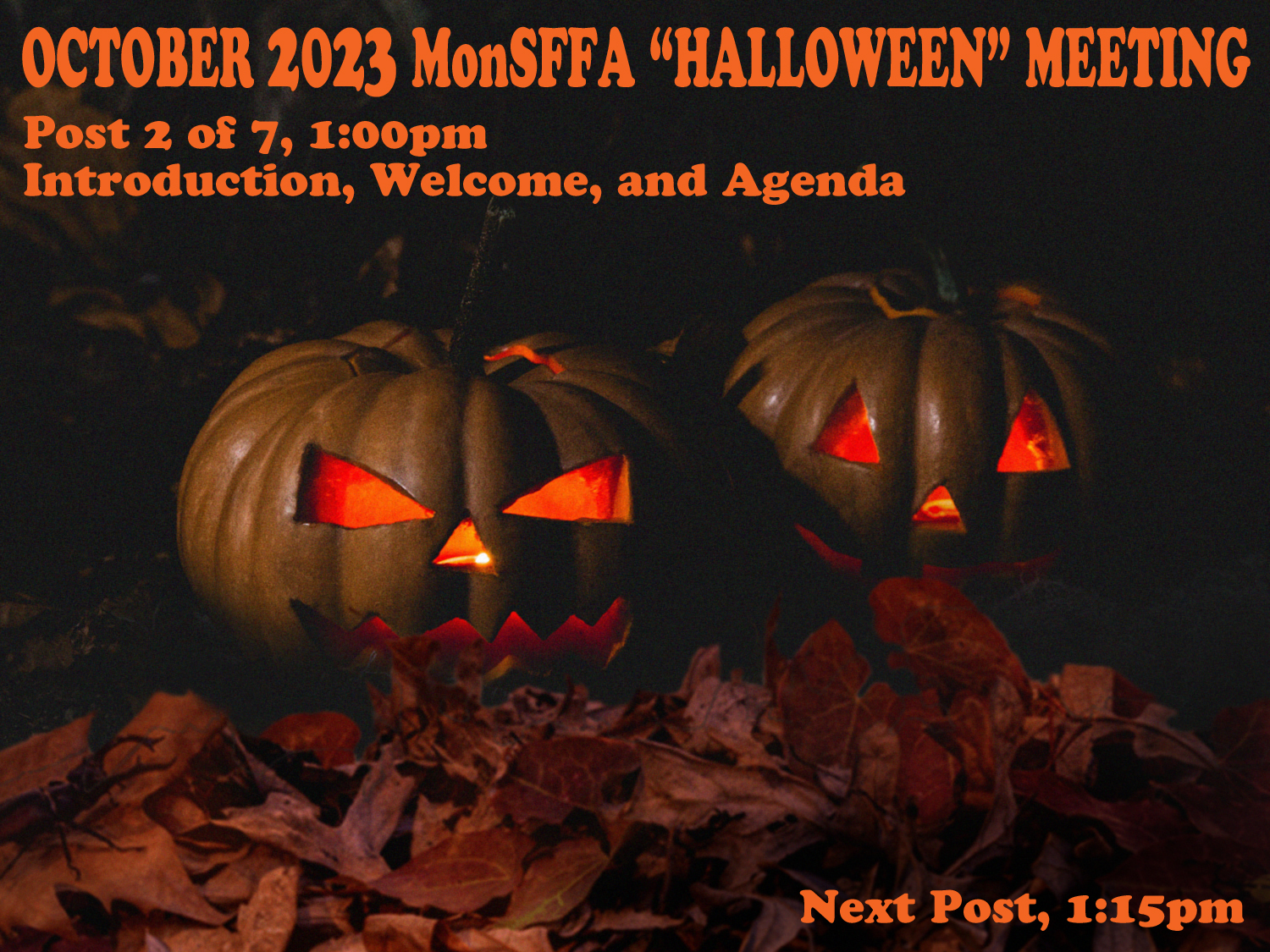 So welcome everyone, to MonSFFA’s Halloween 2023 meeting! Let’s get started…