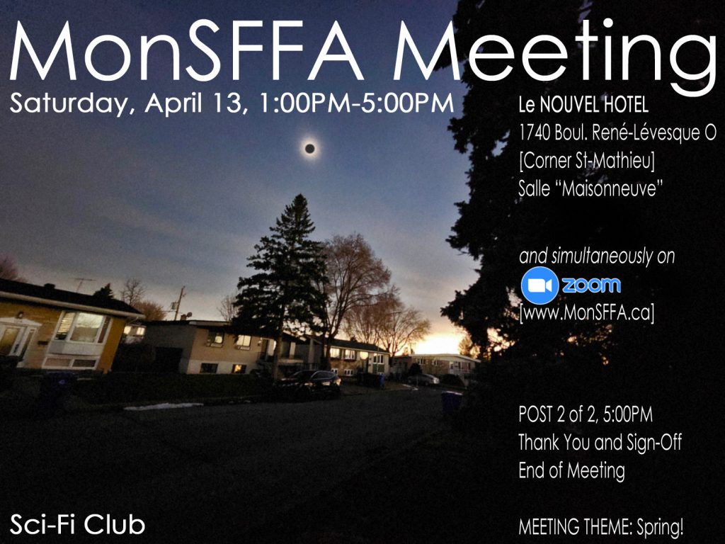 We thank for their contributions to this afternoon’s programming Cathy Palmer-Lister, Keith Braithwaite, and Danny Sichel, all of our contributing participants, as well as everyone who helped to plan and run this meeting. And, of course, we thank all of you who joined us here in person, and on ZOOM; don’t forget to comment on today’s get-together (www.MonSFFA.ca).