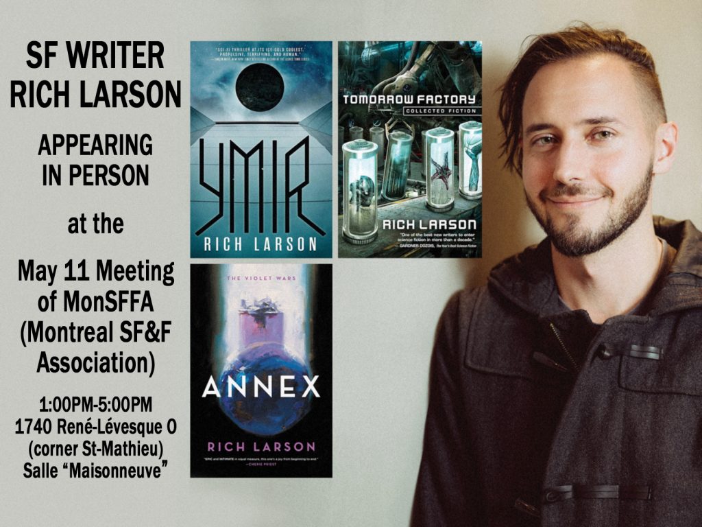 Mark Your Calendars, SF Fans! Appearing in Person this Saturday at MonSFFA’s May 11, 2024 Meeting: SF Writer Rich Larson!