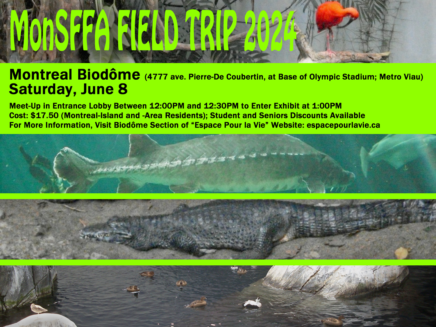 MonSFFen are asked to meet-up in the Biodôme’s main-entrance lobby between noon and 12:30PM—don’t be late!—with the intention of entering the exhibition together at 1:00PM, or possibly 1:30PM—the number of people allowed in at one time is controlled, so we aim to enter as a group during the same time block.