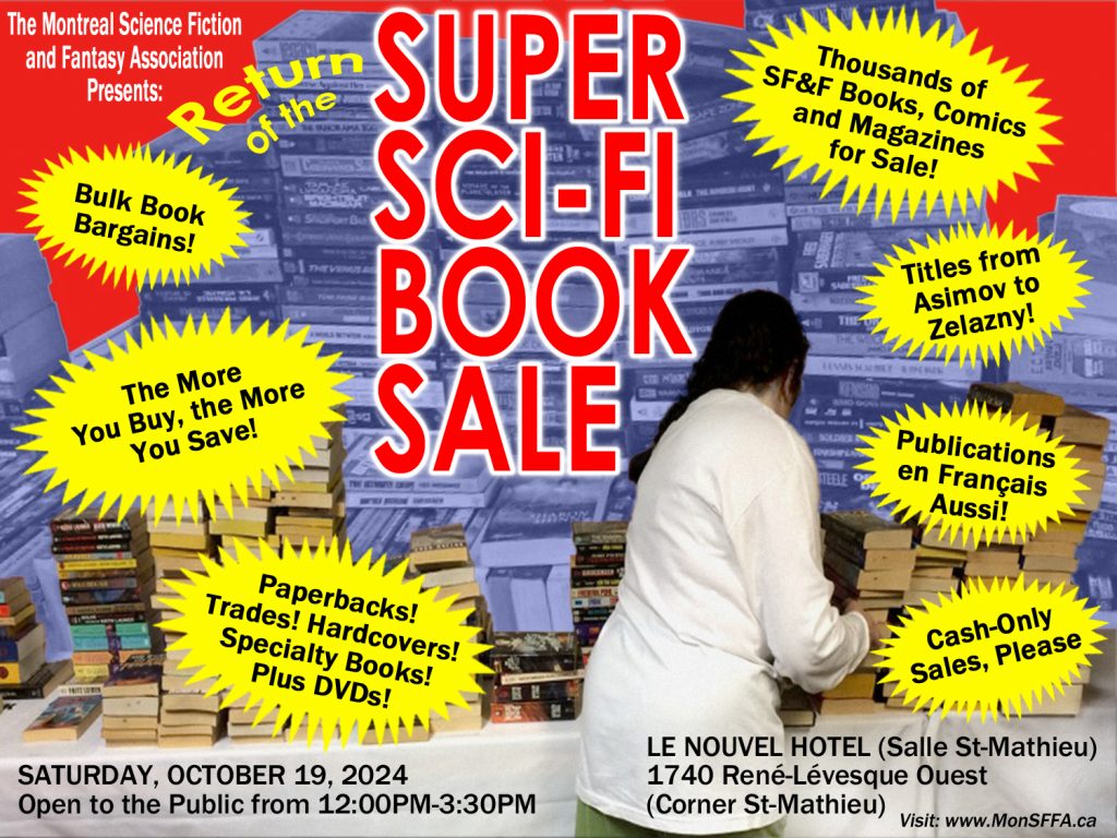 And be sure to attend our Super Sci-Fi Book Sale on Saturday, October 19! Spread the word! Please let your family, friends, and neighbours know about this book sale!