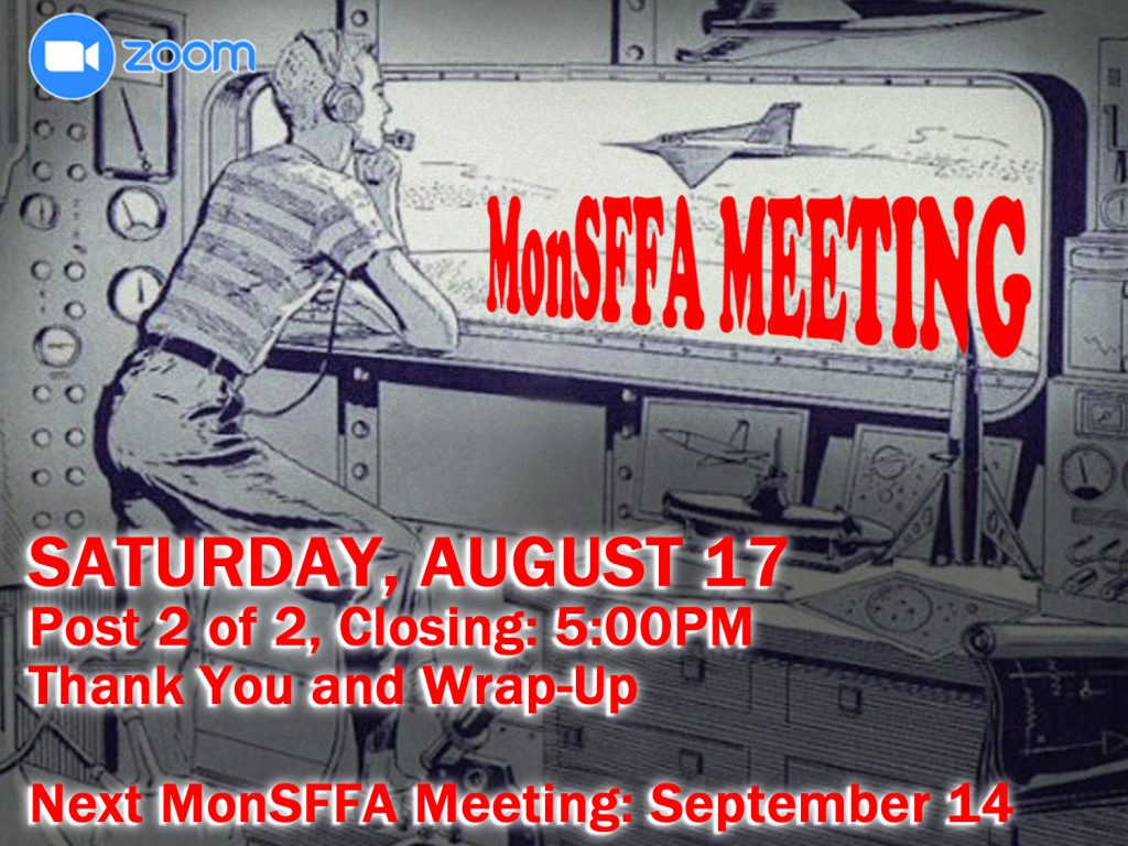 We thank club members Keith Braithwaite, Danny Sichel, Mark Burakoff, and Cathy Palmer-Lister for their contributions to this afternoon’s programming, as well as all of our contributing participants, and everyone who helped to plan and run this meeting. Finally, of course, we thank all of you who joined us here in person, and on ZOOM; don’t forget to comment on today’s get-together (www.MonSFFA.ca).