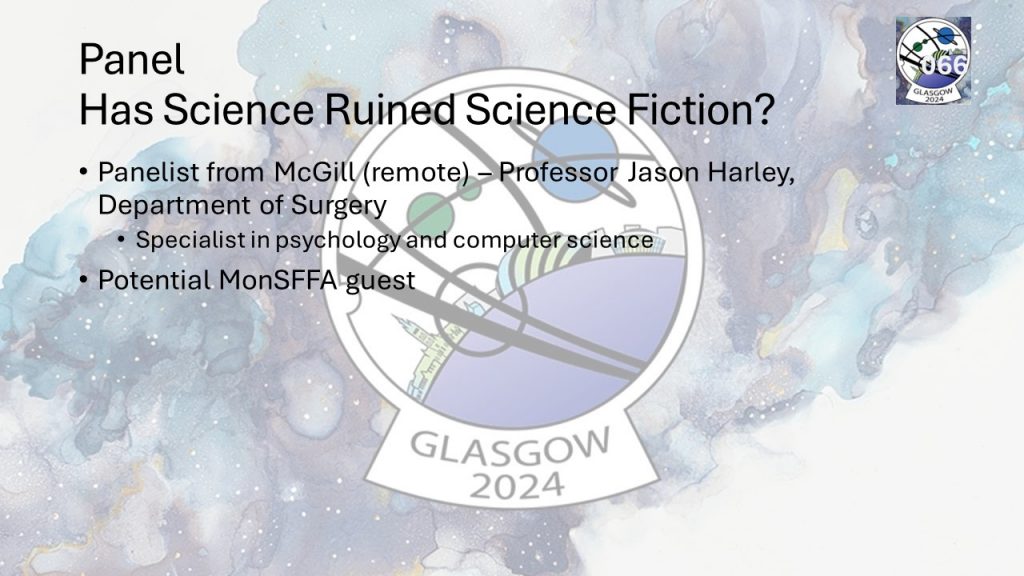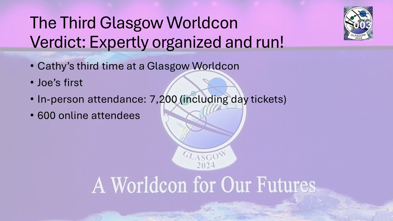 MonSFFen who attended the 2024 Worldcon in Glasgow, Scotland, offer a report on the convention, sharing anecdotes and photos with the club.