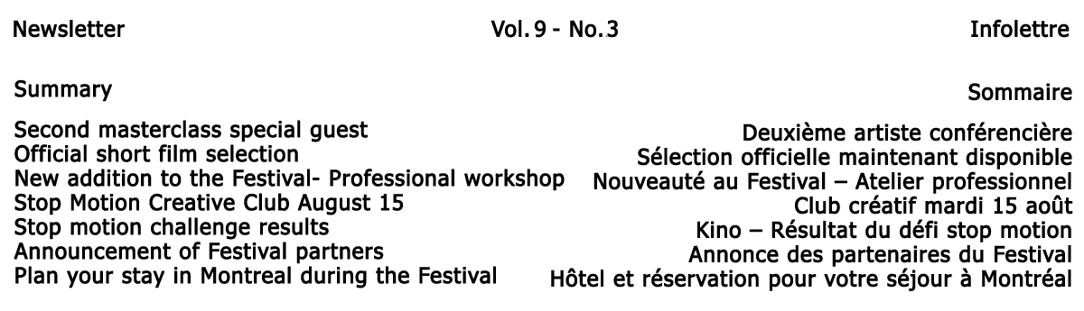 Newsletter from the Montreal Stop Motion Festival can be accessed here