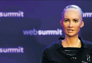 Yesterday, Nov 7th, Sophia, the world’ first robot citizen appeared at the Web Summit in Lisbon. Sophia was made a citizen of Saudi Arabia in October. (Does she have to wear a veil? Will she be allowed to drive? ) There was a very, very brief article in today’s Gazette, mostly photo which appears below, credited to Oatricia de Melo Moreira / Getty Images