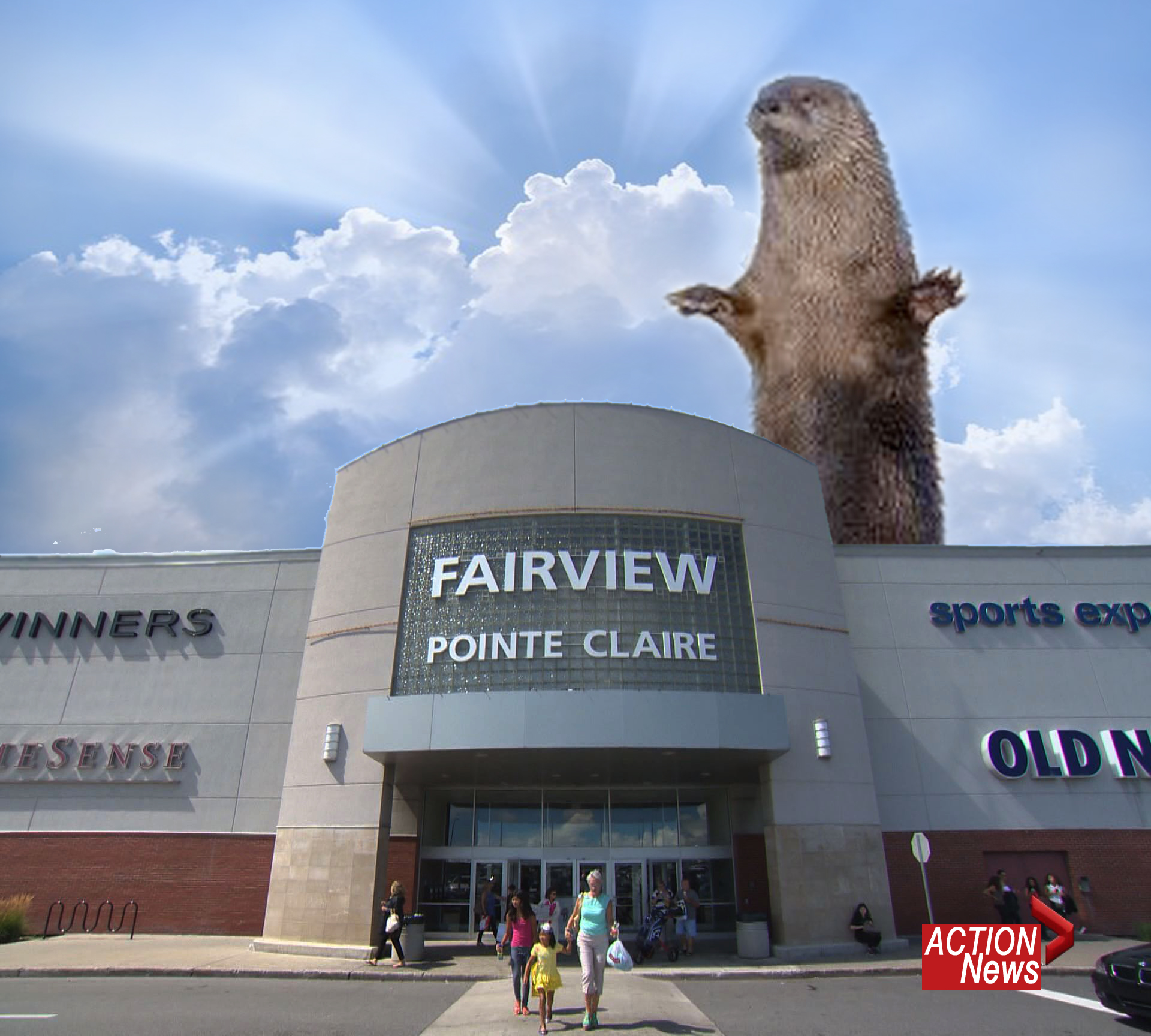 King Otterah has been spotted on the West Island! Canadian Titans have recently been awakening across the nation, mystifying scientists at the National Research Council! Action News captured this image of King Otterah looming over unsuspecting shoppers at the Fairview Mall. The whereabouts of Beavra, meanwhile, last seen in 2003, remain unknown at this time!