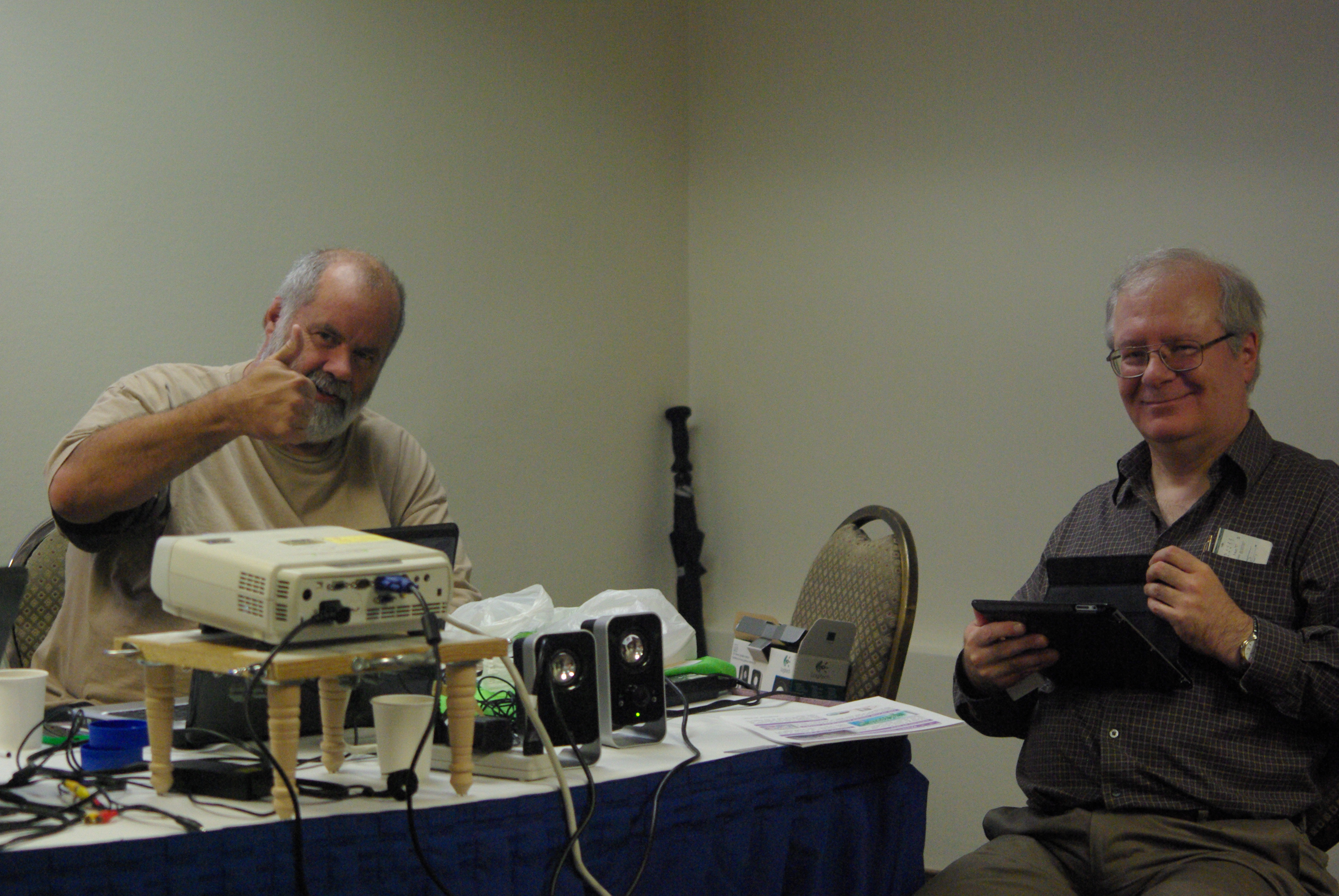 Keith did a fabulous job on the raffle prizes this year. They were all individually wrapped, and winners had to pick from the pile, so no one knew quite what they were getting. I don’t remember all the winners, but Josée won a jigsaw puzzle that will be 6 feet long when finished–if she ever finishes it!– and Mark Nadeau won a collection of Enterprise pins by the TWPG, one of only ten made. Sylvain won a novel, Krampus, which has just been released as a movie. The Fernster went home with David Brin’s Existence.