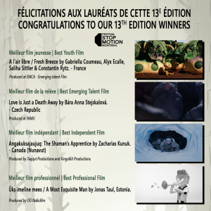 Voir le site web: http://www.stopmotionmontreal.com/accueil/4589487169