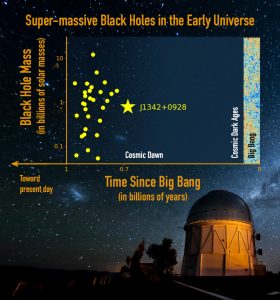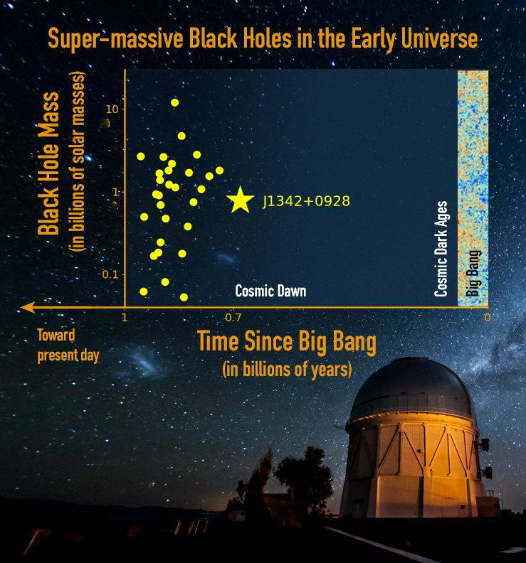 Astronomers are like historians on steroids. They doggedly push back the curtain of cosmic time, peering back to ever-earlier eras in the universe. The latest discovery in this quest, announced today in the journal Nature, is the quasar J1342+0928. This black-hole-powered beacon blazes at us from a redshift of 7.54, or a mere 690 million years after the Big Bang. Read more…